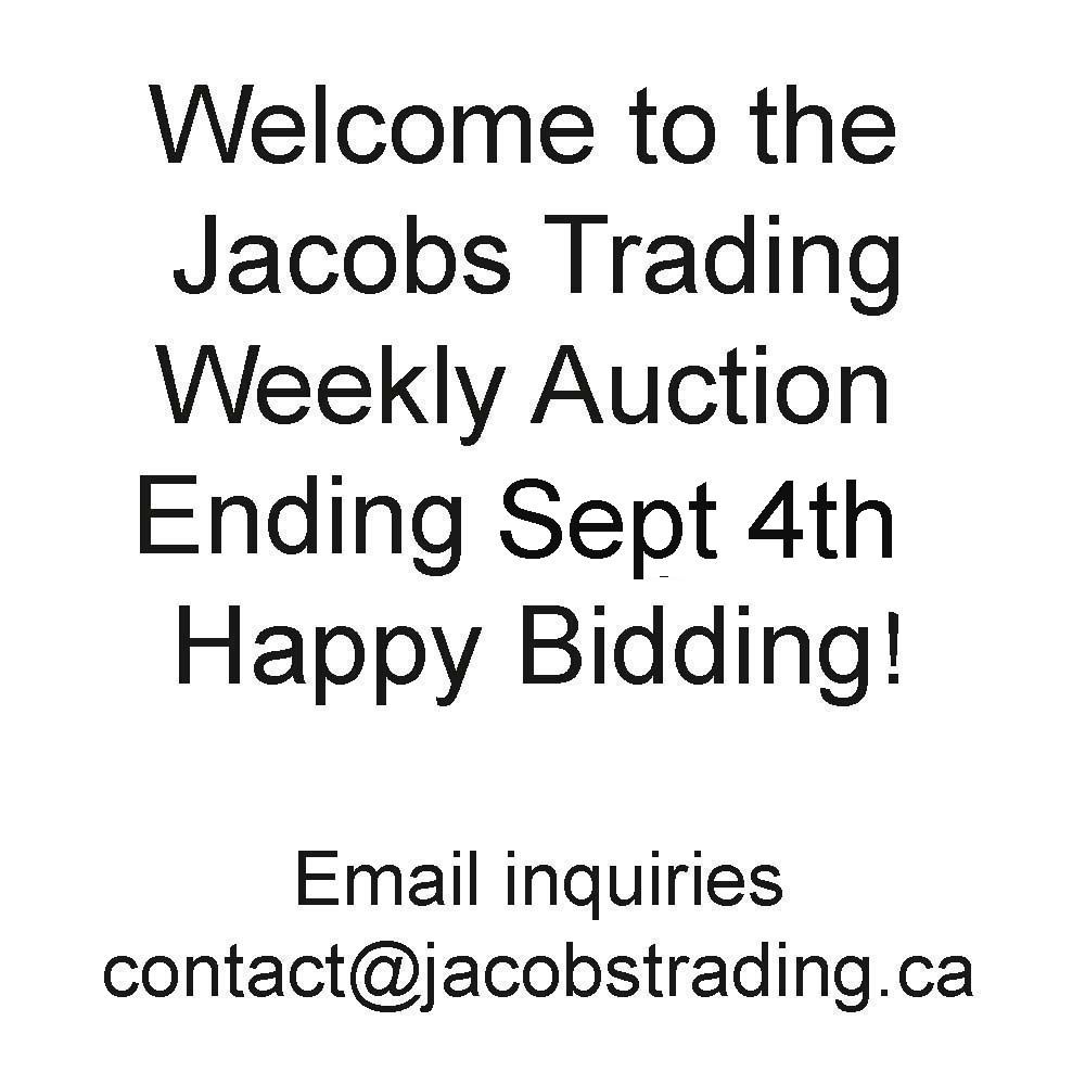 All items are final sale. Live viewing by appointment only. Email contact@jacobstrading.ca or call 204-667-8313.