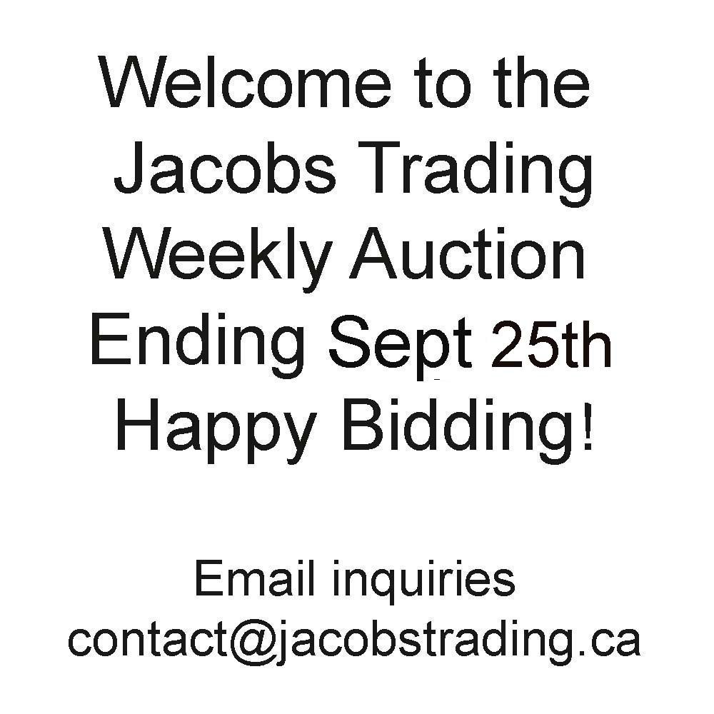 All items are final sale. Live viewing by appointment only. Email contact@jacobstrading.ca or call 204-667-8313.