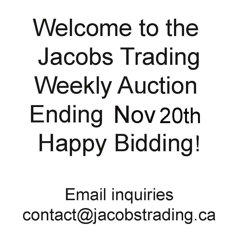 All items are final sale. Live viewing by appointment only. Email contact@jacobstrading.ca or call 204-667-8313.