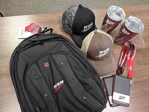 Weldco Beales backpack, caps and cups. Donated by Weldco Beales