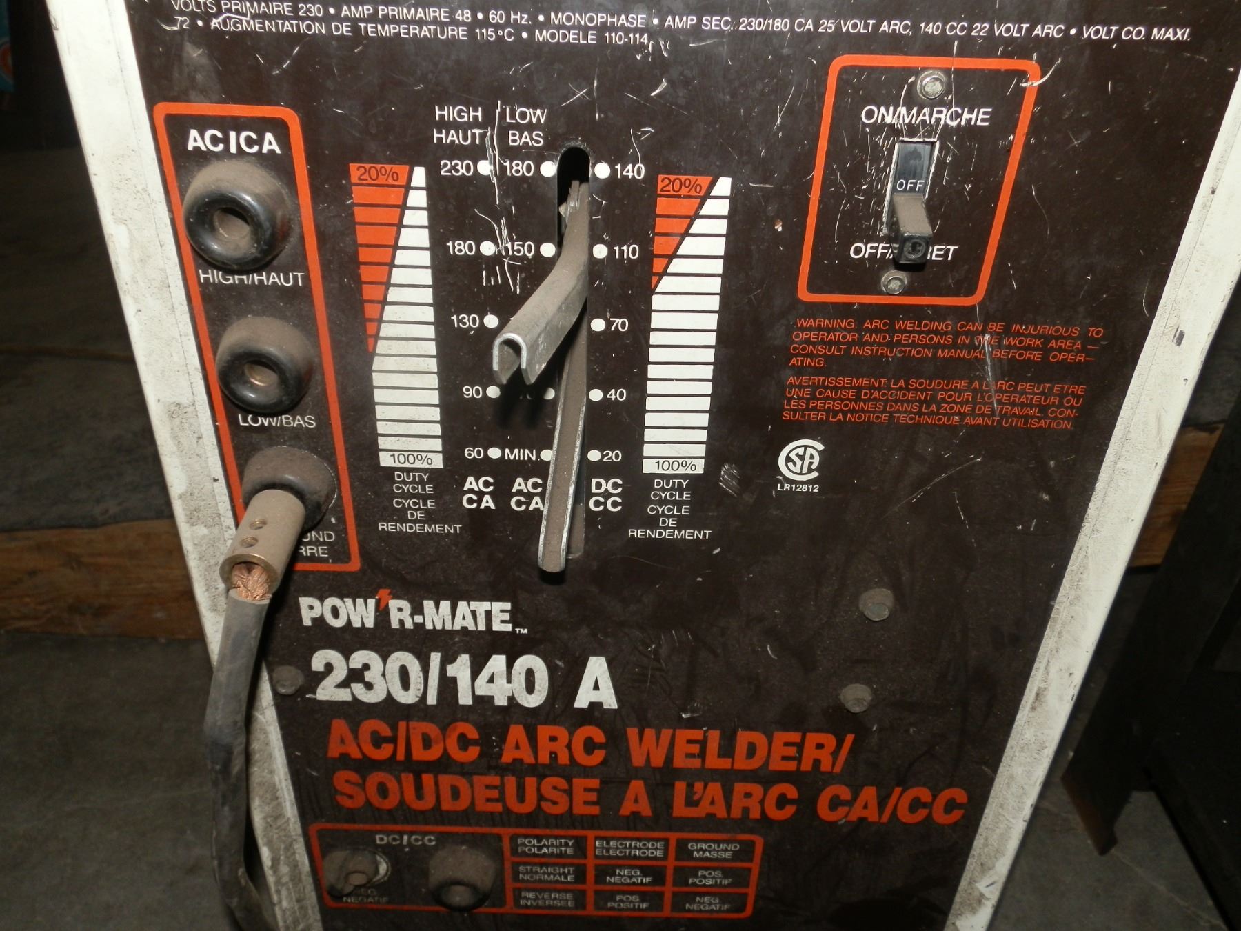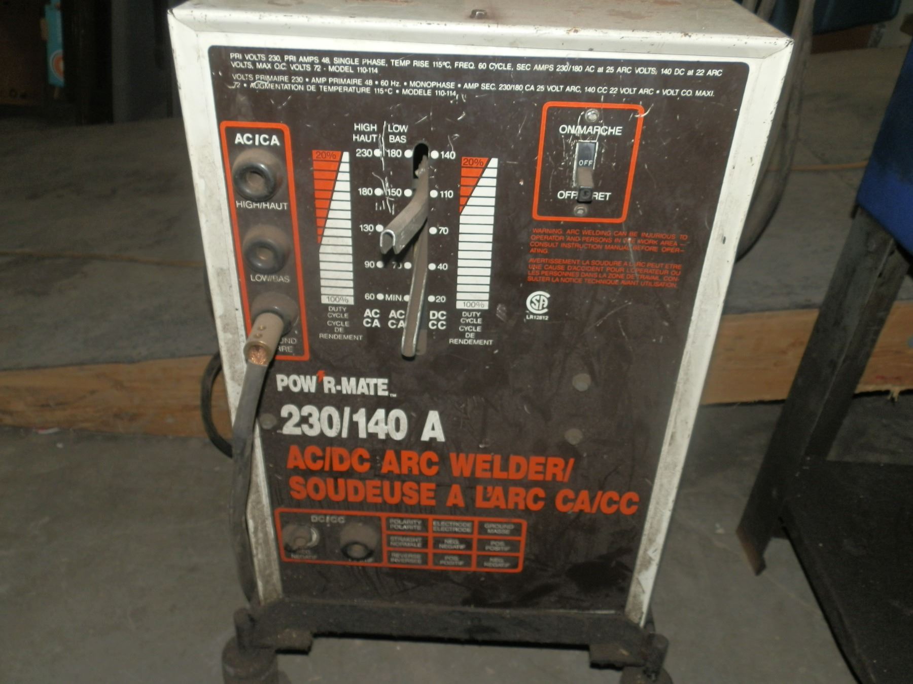 Pow R Mate AC/DC Arc Welder, 230 /140 amps, comes with the cables, condition unknown...Used