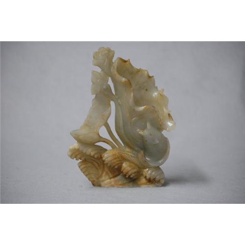 Well Carved Celadon Jade Flower and Fish. good condition.