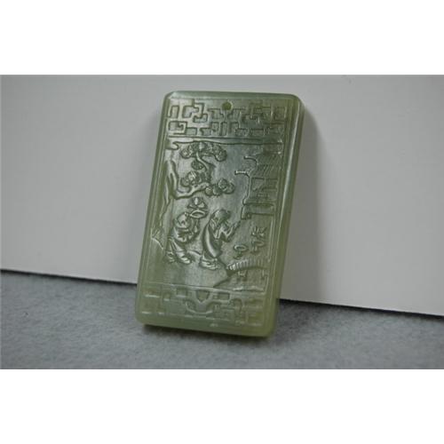 <tr><td>Title:Well Carved Celadon Jade Pendant.</td></tr>