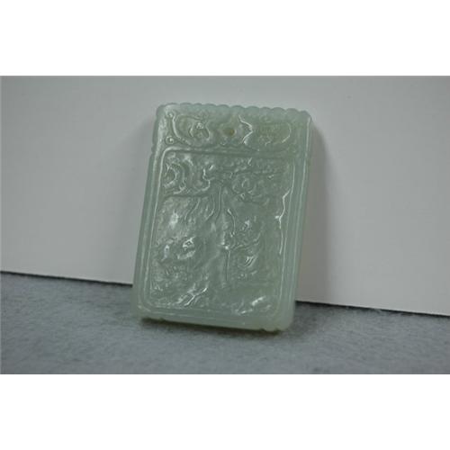 <tr><td>Title:Well Carved Celadon Jade Pendant.</td></tr>