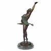 The ballerina stands tall and elegant as she looks to the heights of the balcony lovingly waving to the admiring audience in a standing ovation. She wears a tiara and a tutu, the classic costume of the ballet dance, which has a textured floral print in great detail. This is a great gift for any prime ballerina who embraces and practices this dance form or for any ballet enthusiast. She was captured using the thousand-year-old method of lost-wax casting and stained with a brown patina stain for preservation and mounted atop a marble base. Dimensions: Height 16 X Width 9 inches. Weight: 8 LBS.
