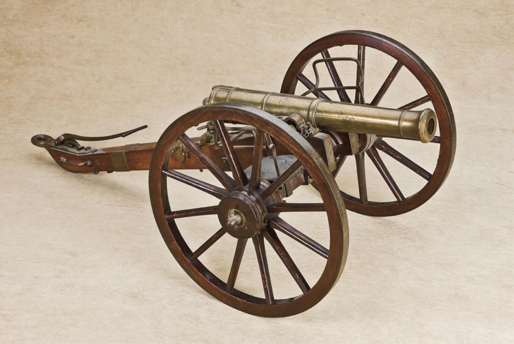 Well-accomplished miniature desk-sized brass barrel cannon on wood carriage showing considerable detail and workmanship. We would date this piece to be pre-1900 and a real work of craftmanship. From the Hugh Hayes estate. Est.: $200-$400.