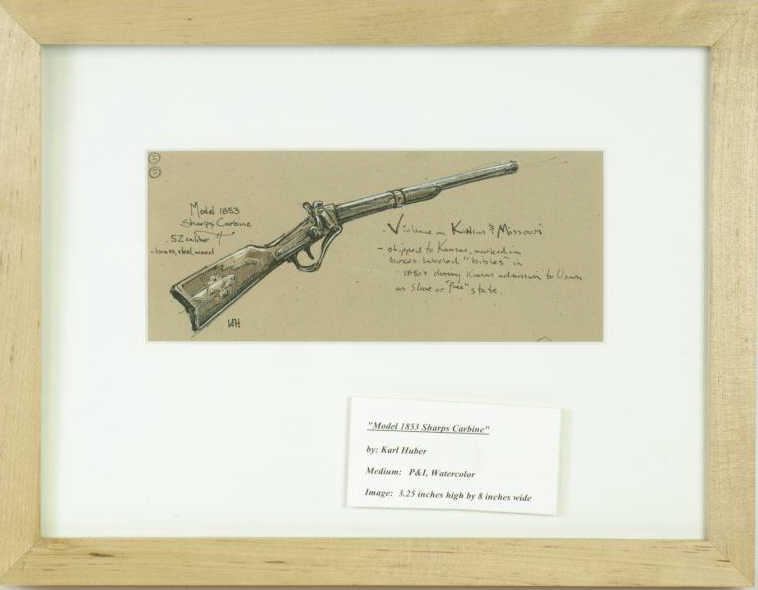 painting depicting a Sharps Model 1853 carbine by Karl Huber, image size measures 3 1/2" X 8".