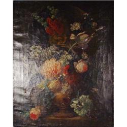 Well detailed oil on canvas - Vase of flowers with butterfly, 77cms x 60cms