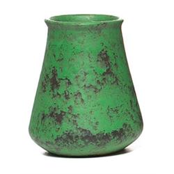 Weller Coppertone vase, tapered form, incised mark, 6"h, minor burst air bubbles