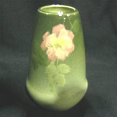 Weller Eocean vase with hand painted rose decoration. 4 3/4" tall. 1898-1918. Factory mint.