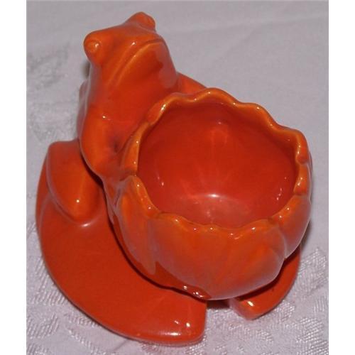 </font></strong>Cute Weller frog planter in deep orange color. Signed Weller pottery. Please see our other frogs. (key: mission, arts & crafts, zanesville, art pottery)