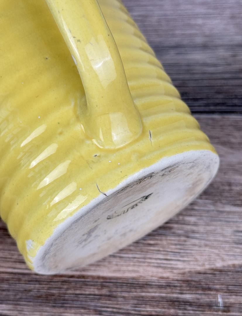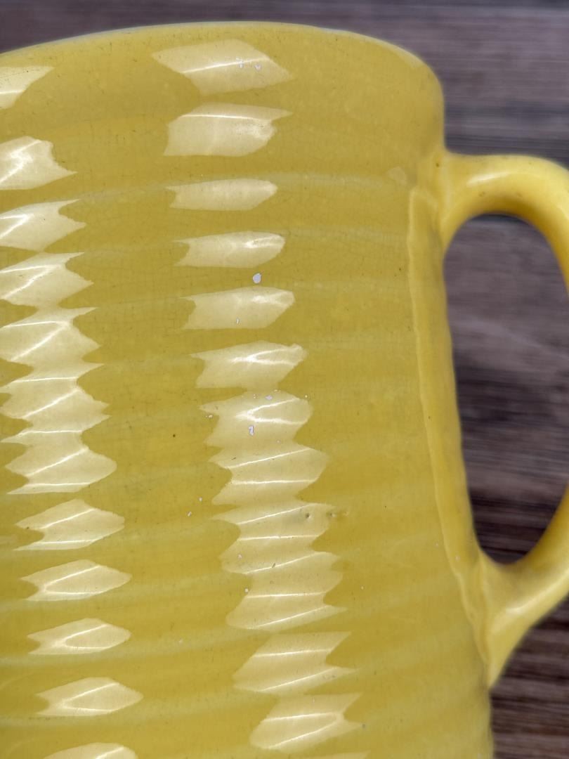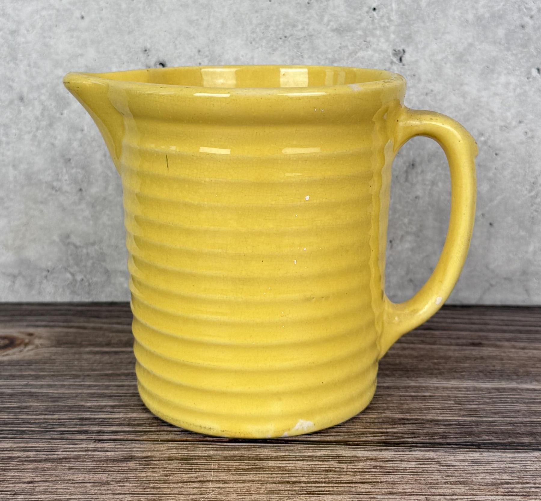 5 1/2" tall by 5 3/8" in diameter. Cracked.