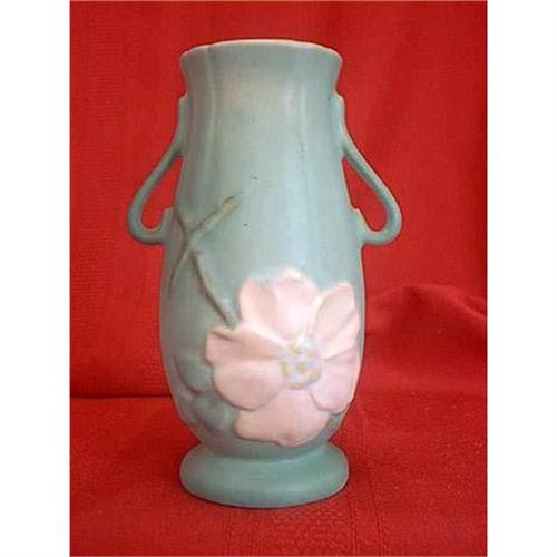 <tr><td>Title:Weller Vase Green With Pink Flower</td></tr>
