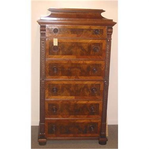 Fine Continental Walnut 6 Drawer Wellington chest with single lockable side panel. c.1890