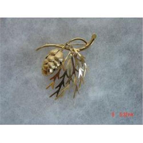 <tr><td>Title:Wells 14kt Gold Pine Cone Brooch</td></tr>