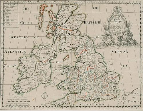 A NEW MAP OF THE BRITISH ISLES, A lightly hand-coloured map printed circa 1718.