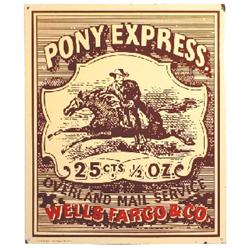 Wells Fargo & Co. Pony Express porcelain sign, 3 color, made by Thomas Bell-NY in the mid 20th Century, Exc. condition, 15"W x 18"H.