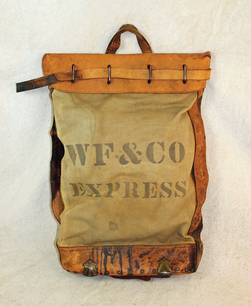 Super nice depot money bag, made of heavy canvas with classic WF&Co lettering, and trimmed in leather with metal hardware. Dimensions 22" x 15".