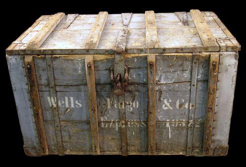 "Wells Fargo" trunk wood with wrought iron hardware all original 23 1/2 w 39 1/2 long and 23 1/2 tall