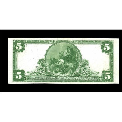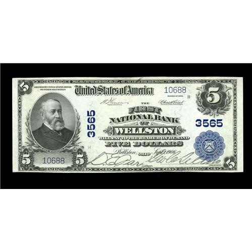 <B>Wellston, OH</B></I> - $5 1902 Plain Back Fr. 600 <B>The First NB </B></I> Ch. # 3565<BR>Bright paper and strong signatures give this <B>Choice About Uncirculated</B></I> note superior eye appeal. This example just misses being classified as fully uncirculated.
