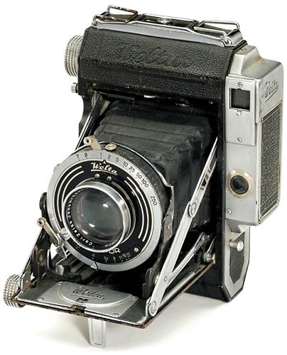 "Weltur 4,5 x 6/6 x 6" Welta, Freital, for 4,5 x 6 and 6 x 6 cm, with 4,5 x 6 mask, Tessar 2,8/7,5 cm, Compur shutter 1-1/250 sec., coupled rangefinder (works).<Br>