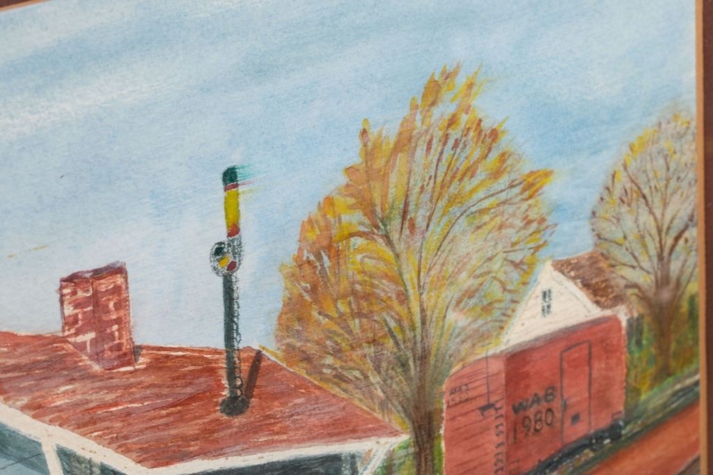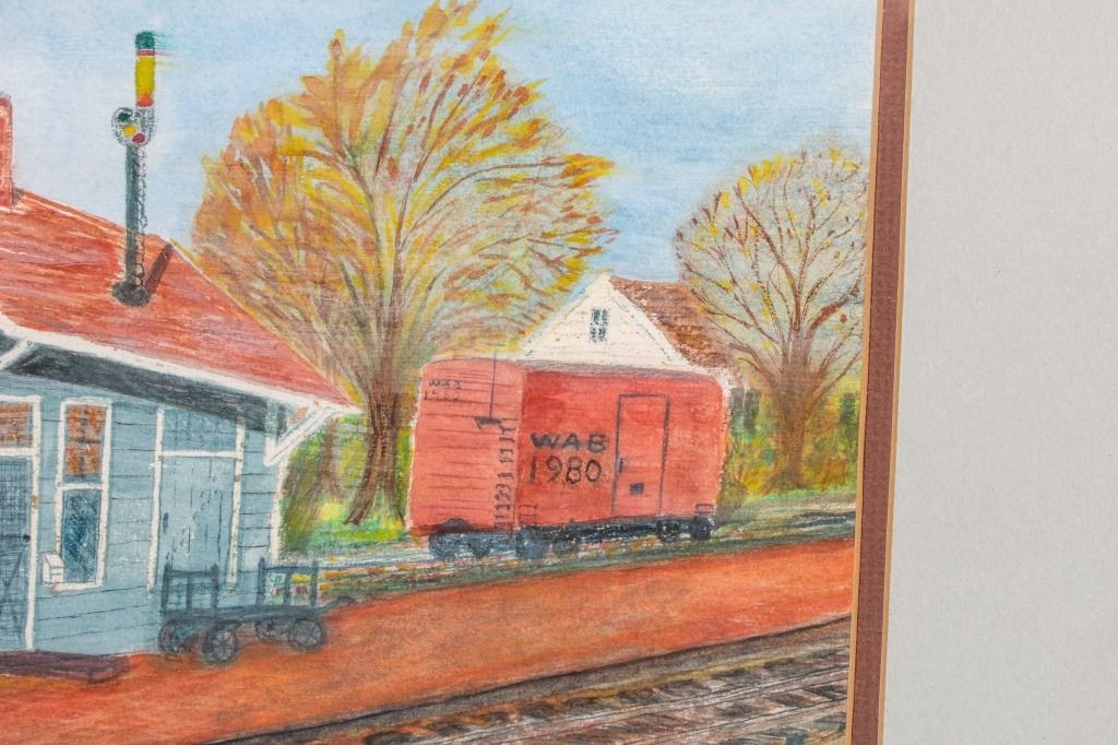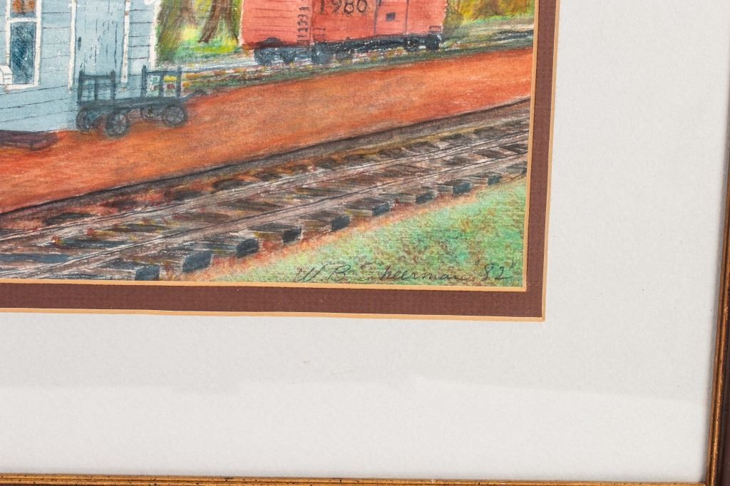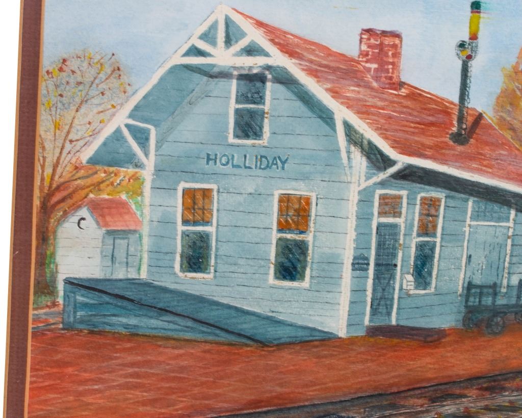 Item/Description: Holliday train station watercolor and gouache painting. Signed lower right W. B. Sheerman '82.