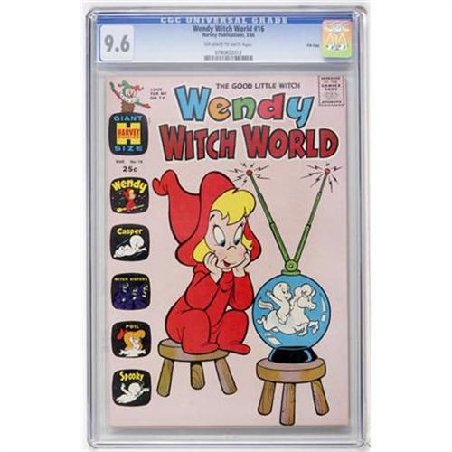 <B>Wendy Witch World #16 File Copy (Harvey, 1966) CGC NM+ 9.6 Off-white to white pages.</B></I> Giant size issue. The first copy that we have ever offered and the single highest CGC-graded copy to date. Overstreet 2007 NM- 9.2 value = $55. CGC census 1/08: 1 in 9.6, none higher.<BR><BR><b>Shipping:</b> Comics - Slabbed (certified) (<a target="_blank" href="http://www.heritageauctions.com/common/shipping.php">view shipping information</a>)