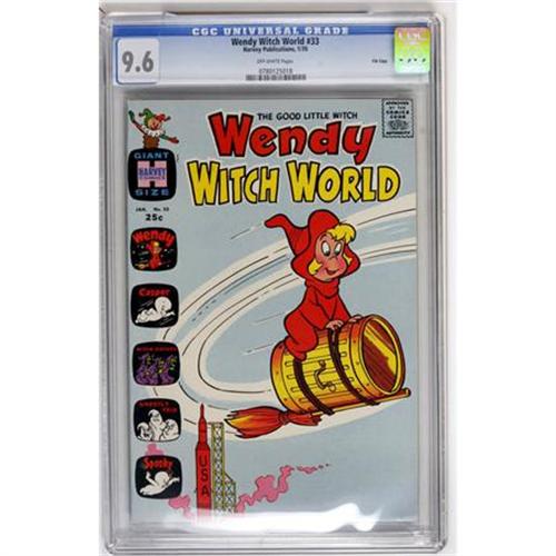 <B>Wendy Witch World #33 File Copy (Harvey, 1970) CGC NM+ 9.6 Off-white pages.</B></I> Overstreet 2007 NM- 9.2 value = $30. CGC census 10/07: 1 in 9.6, none higher.<BR><BR><b>Shipping:</b> Comics - Slabbed (certified) (<a target="_blank" href="http://www.heritageauctions.com/common/shipping.php">view shipping information</a>)
