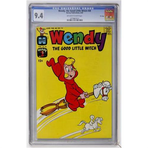 <B>Wendy, the Good Little Witch #30 File Copy (Harvey, 1965) CGC NM 9.4 Off-white to white pages.</B></I> Overstreet 2007 NM- 9.2 value = $50. CGC census 6/07: 1 in 9.4, none higher. <I>From the Cary and Cheryl Porter Collection.</B></I><BR><BR><b>Shipping:</b> Comics - Slabbed (certified) (<a target="_blank" href="http://www.heritageauctions.com/common/shipping.php">view shipping information</a>)
