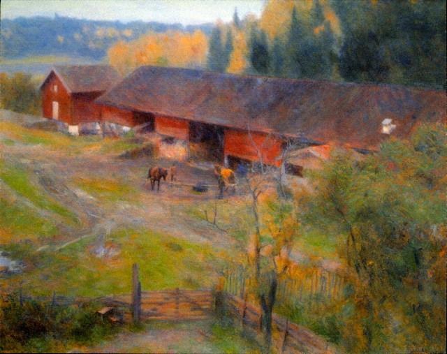 Artist: Erik Theodor Werenskiold - Title: Autumn - Medium: Fine Art Reproduction Giclee on Canvas - Image Size: Approximately 15.75 inches x 20 inches - Unframed on Unstretched Canvas - Biography: Erik Theodor Werenskiold was a Norwegian painter and illustrator. He is especially known for his drawings for the Asbjørnsen and Moe collection of Norske Folkeeventyr, and his illustrations for the Norwegian edition of the Snorri Sturlason Heimskringla.