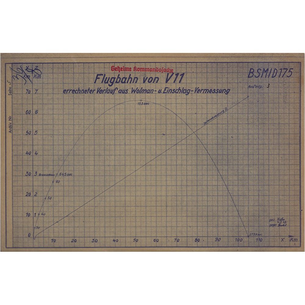 It goes on to offer an observational description of the flight: "Launch was on January 25th 1943, 11:02AM from launch site 2 on launch pad VII. After firing, the first and second stage were working properly, rocket launch with an acceleration of 0.9g. Flightpath: Already in the first second oscillations on the roll axis were watched‰Û_in an altitude of 930m the rocket disappeared in the clouds‰Û_End of firing was reported after 64.5 seconds at a height of 30800m. Velocity of 1012 meter per second. Impact was reported 105.1 km from launchpad. Flight time: 278 seconds. Conclusions: Pump circulation was constant, propulsion worked perfectly until end of firing."