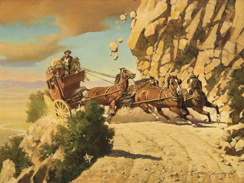 Wes Chapman (1929-1995). "Hell Bent". 18" x 24". Oil on Board. Fine condition. (est $1,800-2,500)