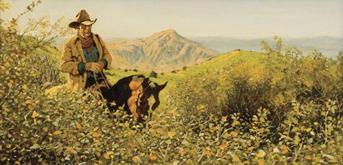 Wes Chapman (1929-1995). "Thru the Brush". 10" x 20". Oil on Canvas. Fine condition. (est $1,000-1,500)