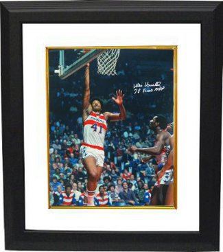 Wes Unseld was one of the best defensive players of his era, and in 1975, he led the NBA in rebounding. The following season, he led the NBA in field goal percentage with a .561 percentage. Unseld took the Bullets franchise to four NBA Finals, and won the championship in 1978 over the Seattle SuperSonics, in which he was named the Finals MVP. He ended his playing career following the 1980–1981 season, and his #41 jersey was retired by the Bullets shortly thereafter. In 1988, Unseld was enshrined into the Basketball Hall of Fame, and in 1996, he was named as one of the NBA's 50 Greatest Players of all time. Wes Unseld has hand autographed this Washington Bullets 16x20 Color Photo with 78 Finals MVP Inscription. Schwartz Sports Hologram and Certificate of Authenticity from Athlon Sports. Custom White Mat and Premium Black Frame as shown.