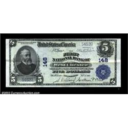 West Chester, PA - $5 1902 Plain Back Fr. 598 The First NB Ch. # 148Barely circulated Extremely Fine