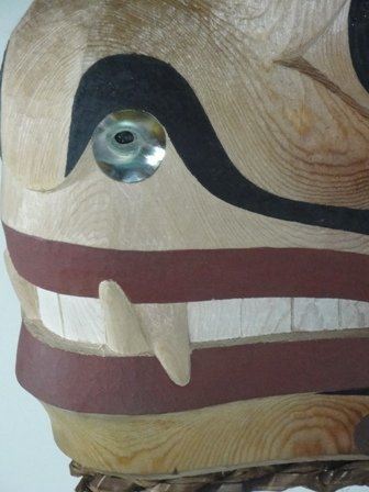 West Coast Native Bear Mask.... red cedar.. 13" height... carved...painted... and inverted abalone in the nose.... first nation artist....Doug David