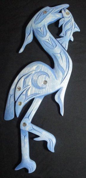 West Coast Native Blue Heron with Fish.....old growth yellow Cedar.....21" Height....detailed carving.... abalone....by first nation artist Brian Bob