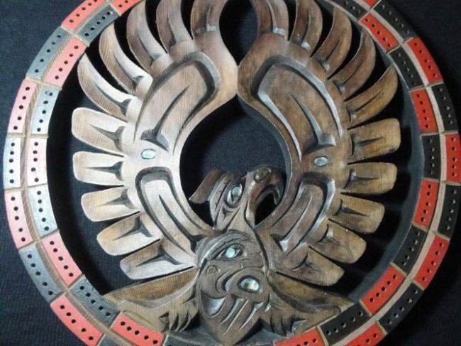 West Coast Native Eagle in Moon....15.5" diameter... red cedar. carving by first nation artist.... George Nookamus