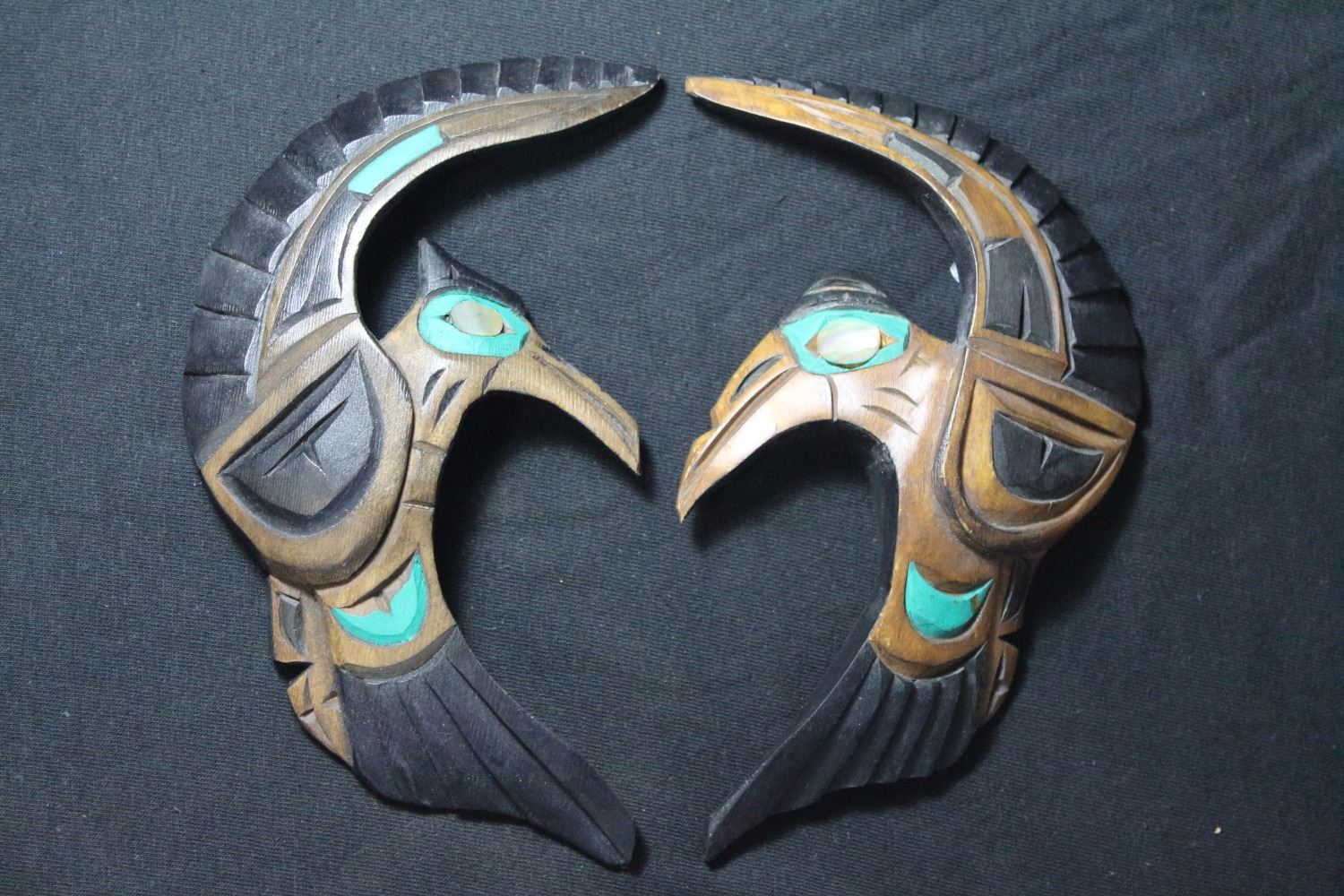 West Coast Native Hand Carved Hummingbirds Love Birds Pair....size 7 inch each.......Artist George Nookamus