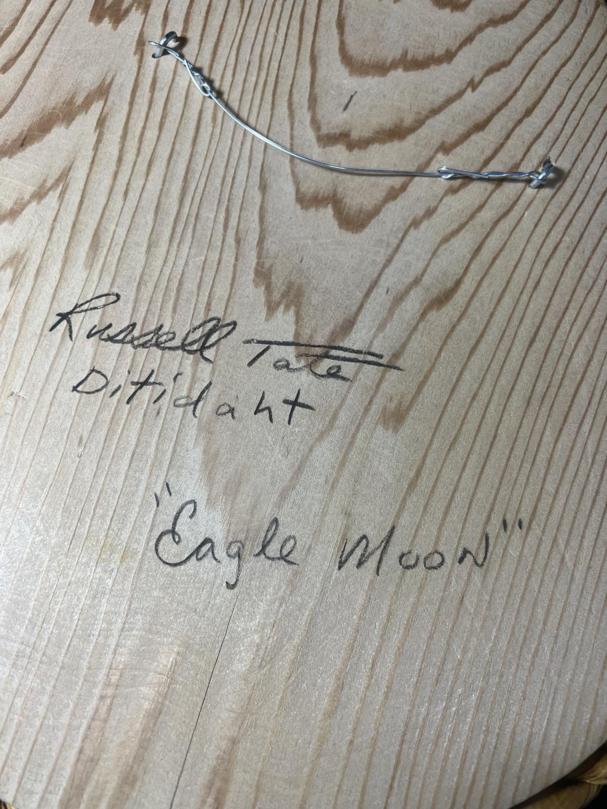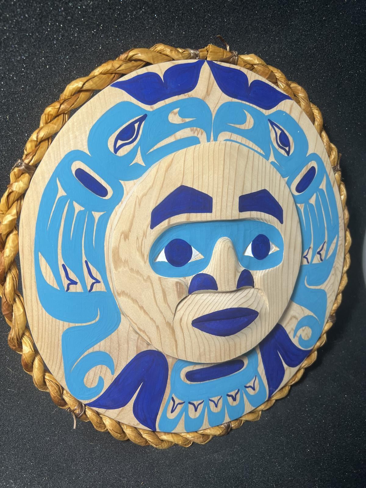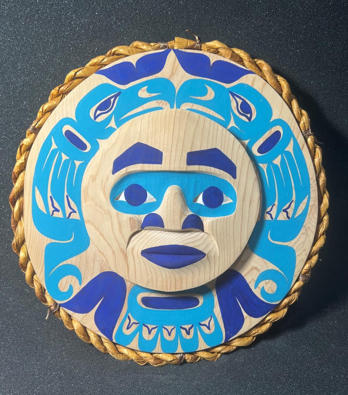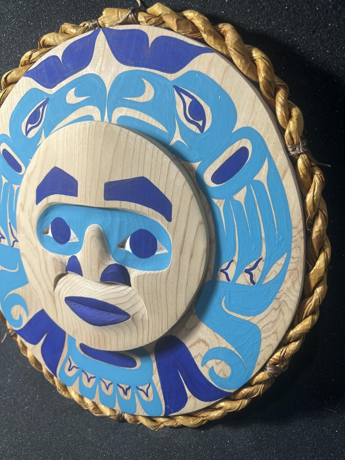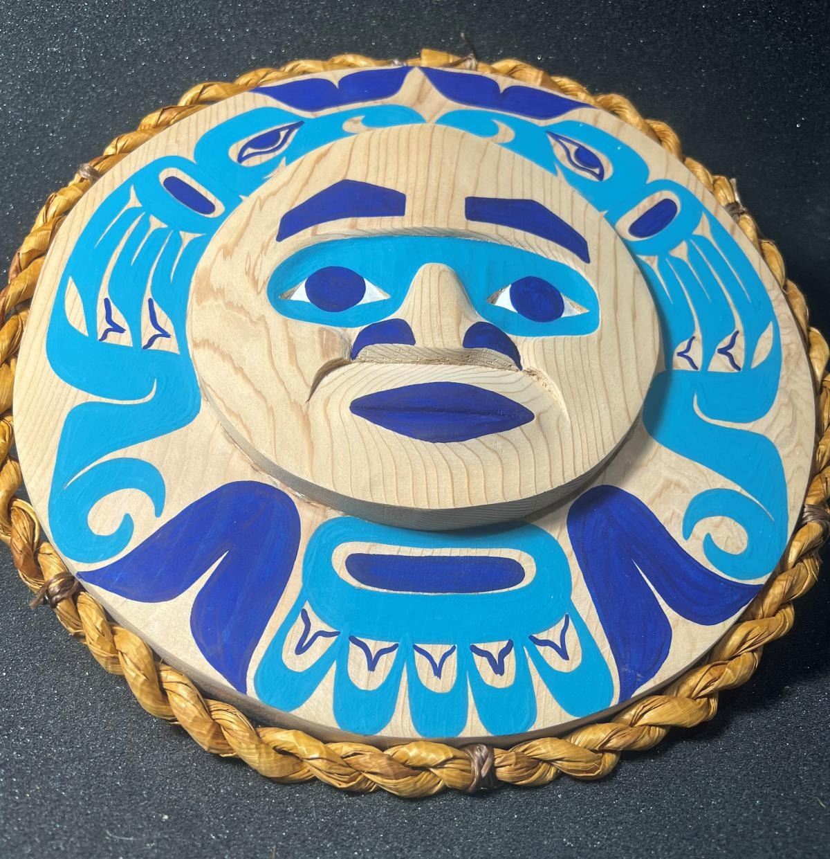 West Coast Native Moon Mask with EafleSpirit........10 inches in size.....Hand Craved on the Red cedar by First Nation Artist Russell Tate......Russell Tate is from Ditidaht First Nation on the Southwest Coast of Vancouver Island. He started carving in 2004, artists such as Art Thompson and the artists on the Ravens and Eagles show inspired him. Russell learned how to carve wood mostly working on his own. He specializes in masks and paddles, but is now working on small poles and miniatures for Regalia. Russell has worked with Ben David and Cecil Dawson, and has collaborated on several pieces with Cecil Dawson.