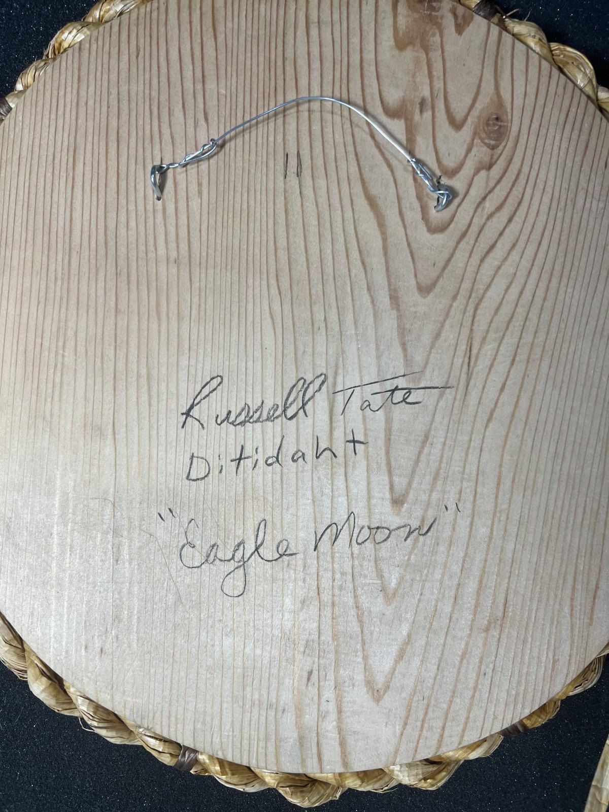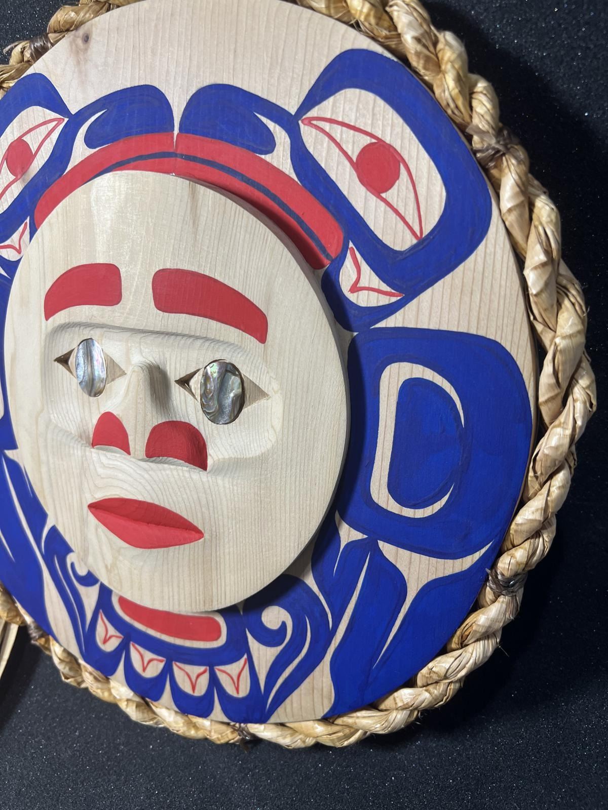 West Coast Native Moon Mask with Eagle Spirit........10 inches size.....Hand Craved on the Red cedar by First Nation Artist Russell Tate......Russell Tate from the Ditidaht First Nation on the southwest coast of Vancouver Island. He started carving in 2004, artists such as Art Thompson and the artists on the Ravens and Eagles show inspired him. Russell learned how to wood carved mostly working on his own. He specializes in masks and paddles, but is now working on small poles and miniatures for regalia. Russell has worked with Ben David and Cecil Dawson, and has collaborated on several pieces with Cecil