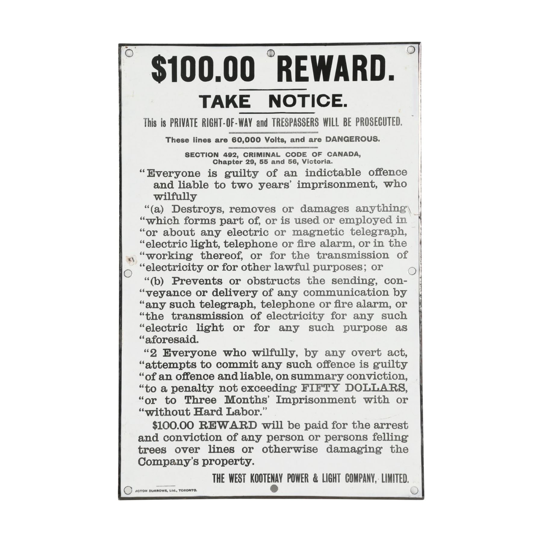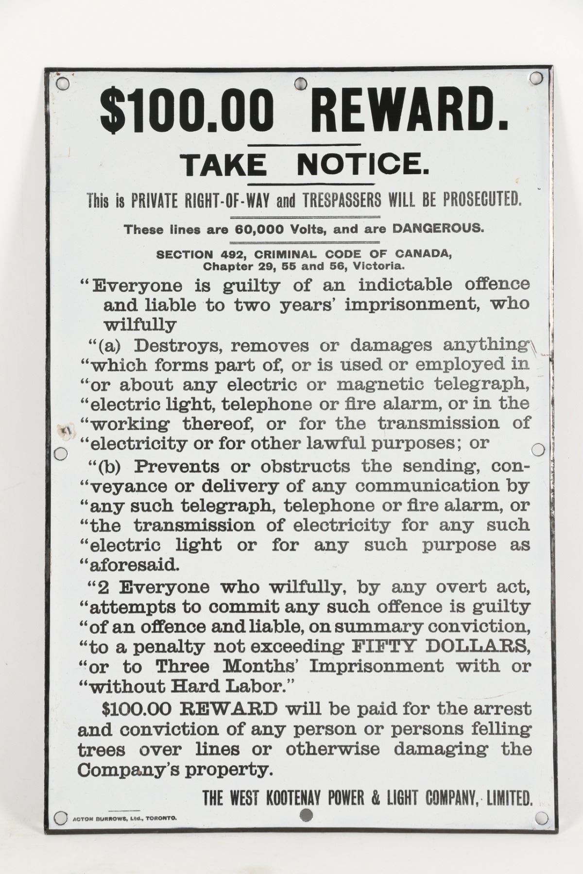 Marked, "Acton Burrows Ltd. Toronto" lower left. Original tag on reverse outlines sign cleaning and mounting instruction. 18" x 12". Minor flake, left quarter. $150-250.