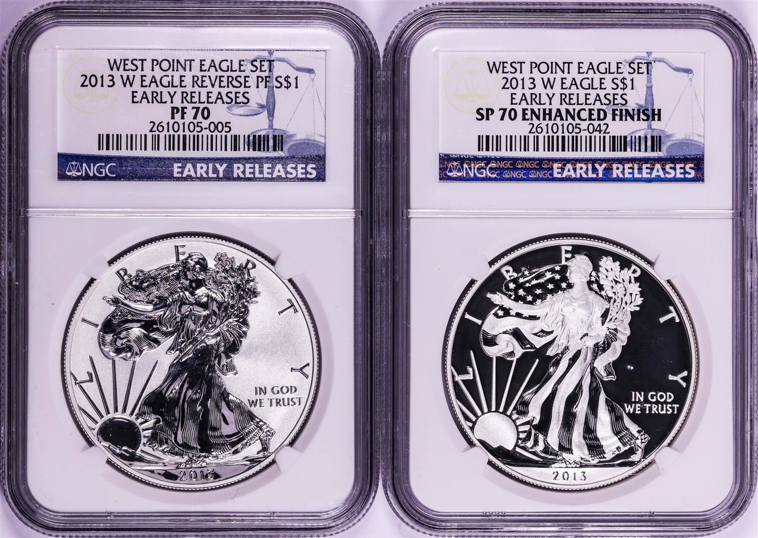 West Point 2013-W $1 Enhanced & Proof American Silver Eagle Coins NGC PF70/SP70 ER