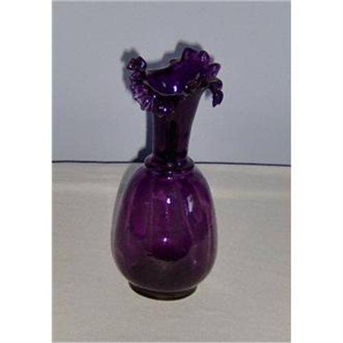 This fine sparkling amethyst handblown ruffled vase has been made by one of the fine West Virginia glassmakers--possibly Viking or Hamon.</em></td>