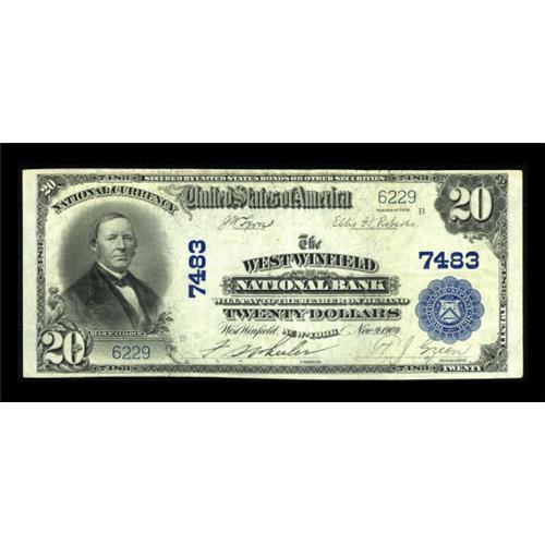 <B>West Winfield, NY</B></I> - $20 1902 Plain Back Fr. 650 <B>The West Winfield NB</B></I> Ch. # 7483<BR> A very scarce Herkimer County bank in large, with the census showing just four such examples enumerated to date. This piece is newly discovered, and almost certainly the finest of the group. Pen signed <B>Very Fine+++,</B></I> a well margined piece with exceptional eye appeal. <BR><BR><b>Shipping:</b> Coins & Currency (<a target="_blank" href="http://www.heritageauctions.com/common/shipping.php">view shipping information</a>)
