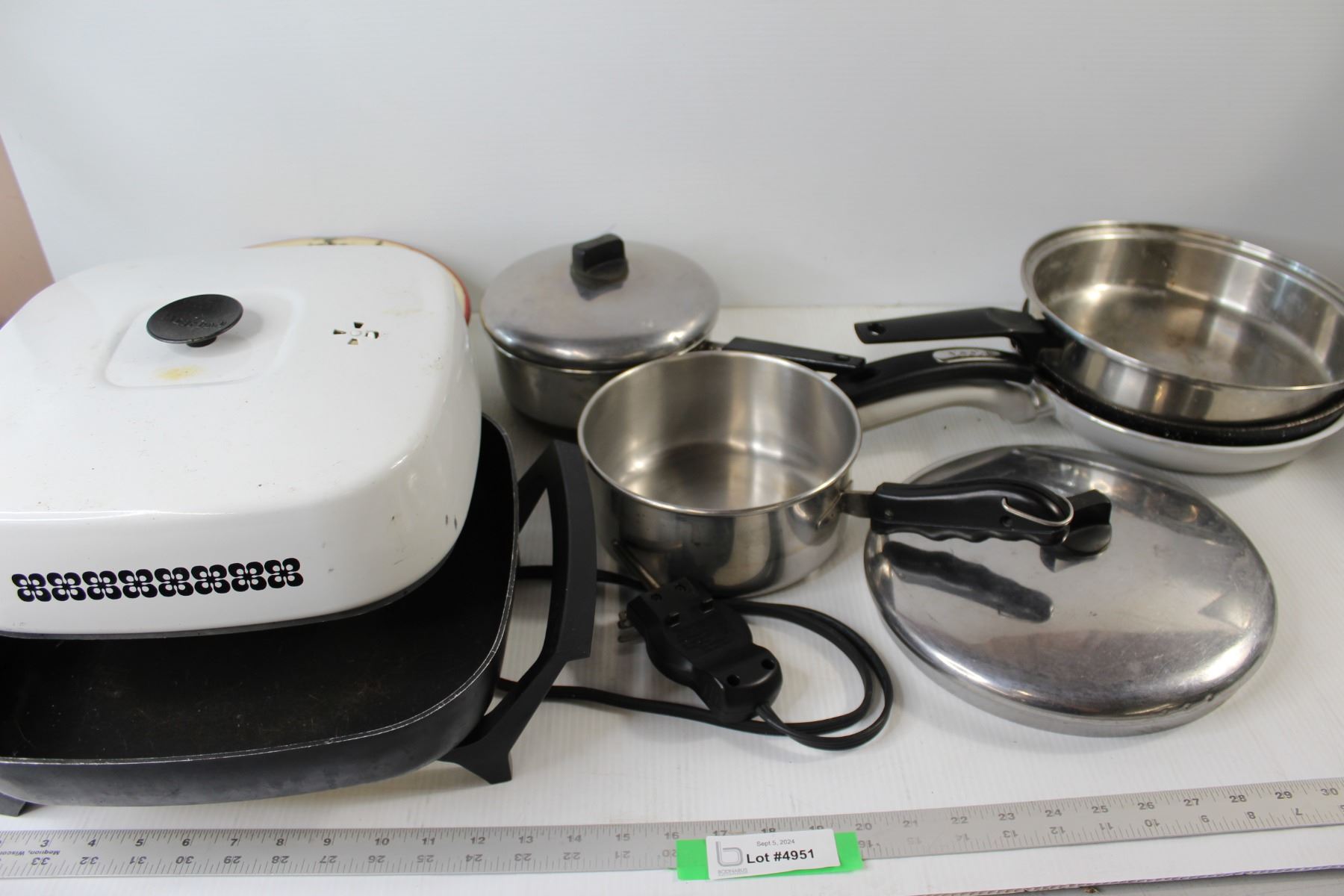 Westbend Portable Cooking Pan - Tested Works, (2) Pots, (3) Pans, Enamel Bowl