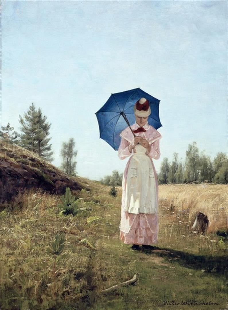Artist: Victor Axel Westerholm - Title: Victor Nainen Paivanvarjoineen - Medium: Fine Art Reproduction Giclee on Canvas - Image Size: Approximately 20 inches x 14.75 inches - Unframed on Unstretched Canvas - Biography: Victor Axel Westerholm (4 January 1860 - 19 November 1919) was a Finnish landscape painter.