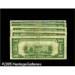 <B>Western 1929 National Bank Notes</B></I><BR>Denver, CO - $20 1929 Ty. 1 United States NB Ch. # 7408 F-VF<BR>Grand Forks, ND - $20 1929 Ty. 1 First NB Ch. # 2570 VG<BR>Los Angeles, CA - $20 1929 Ty. 1 Security-First NB Ch. # 2491 Very Fine<BR>Portland, OR - $20 1929 Ty. 1 United States NB Ch. #4514 Fine<BR>Salt Lake City, UT - $20 1929 Ty. 1Deseret NB Very Fine.<BR> 5 notes Lot:17023