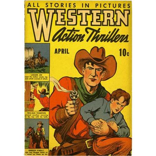 <B>Western Action Thrillers #1 (Dell, 1937) Condition: FN/VF.</B></I> Here's a 100-pager we had previously seen only in much lower grades. Note that CGC does not encapsulate this issue because of its unusual format (it's taller than a regular Golden Age book). Overstreet 2007 FN 6.0 value = $258; VF 8.0 value = $538.<BR><BR><b>Shipping:</b> Comics - Unslabbed (<a target="_blank" href="http://www.heritageauctions.com/common/shipping.php">view shipping information</a>)