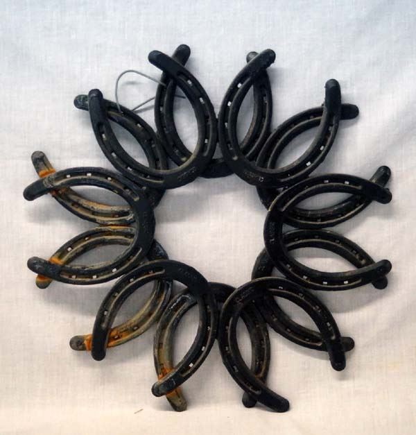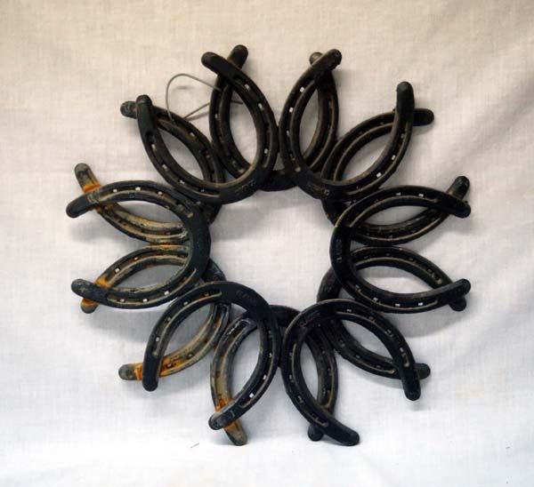 Western Americana Horseshoe Wreath, measures 14''D, constructed of Diamond Classic Horseshoes